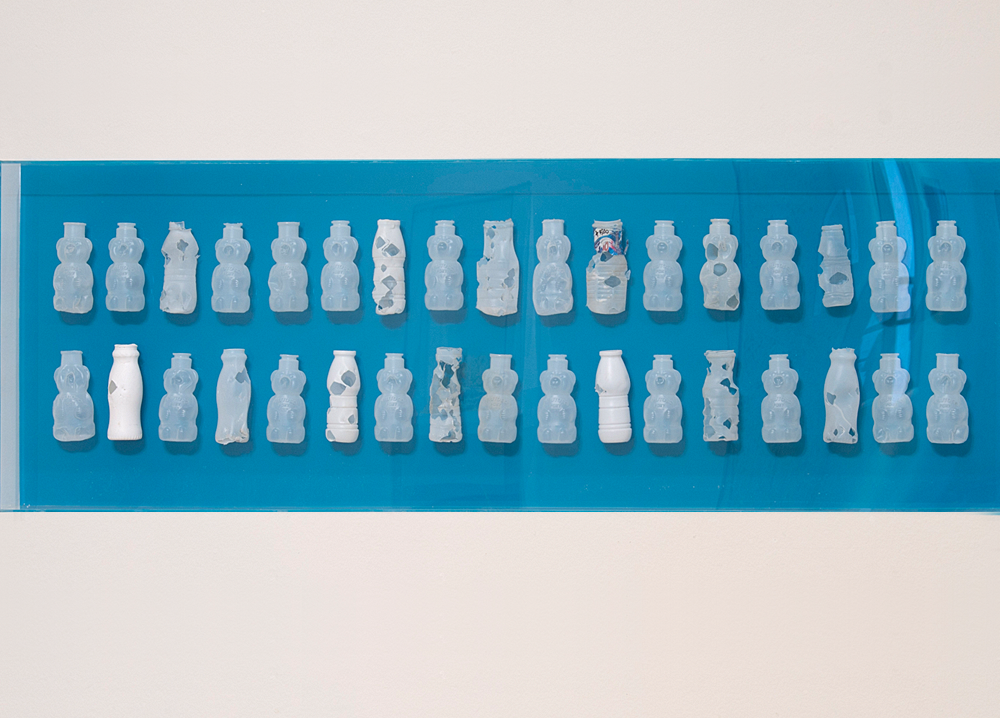 Shelia Rogers: Oceans of Plastic | Art Museum of South Texas | July – September 2014 Dinner Party 22 X 70 X 4 inches plastic beach trash Poky juice bear bottles