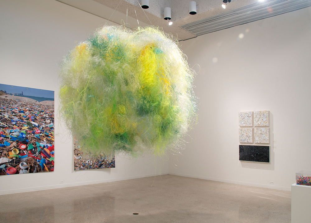 Shelia Rogers: Oceans of Plastic | Art Museum of South Texas | July – September 2014 Entanglement plastic beach trash monofilament fishing line overall dimensions variable