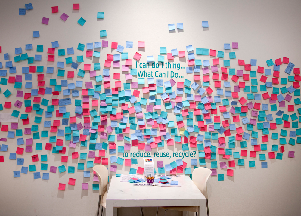 Shelia Rogers: Oceans of Plastic | Art Museum of South Texas | July – September 2014 Gallery View I can do 1 thing.... table, chairs, Post-it notes, pencils overall dimensions variable